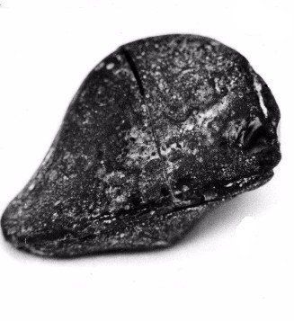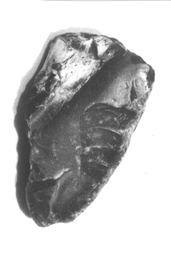 4. A fossilized bone which has clear notches of an ax. It is even the cut of the ax recognizable.